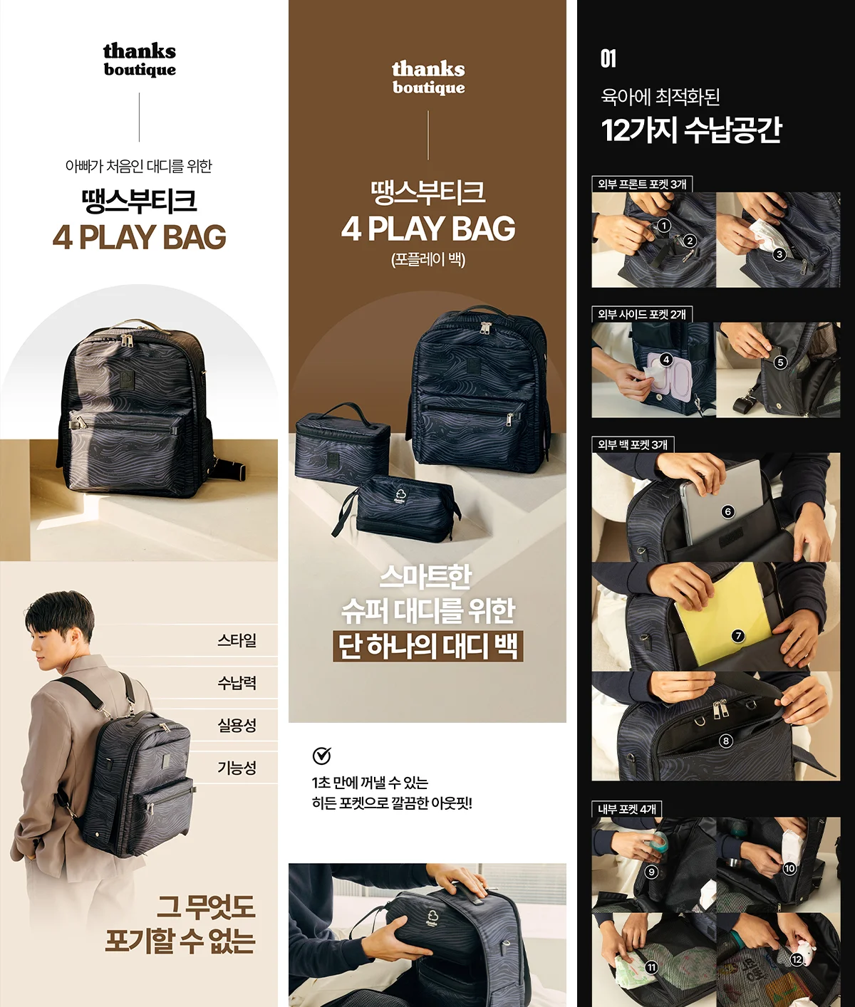 떙스부티크 '포플레이 백' 와디즈 상세페이지 디자인
