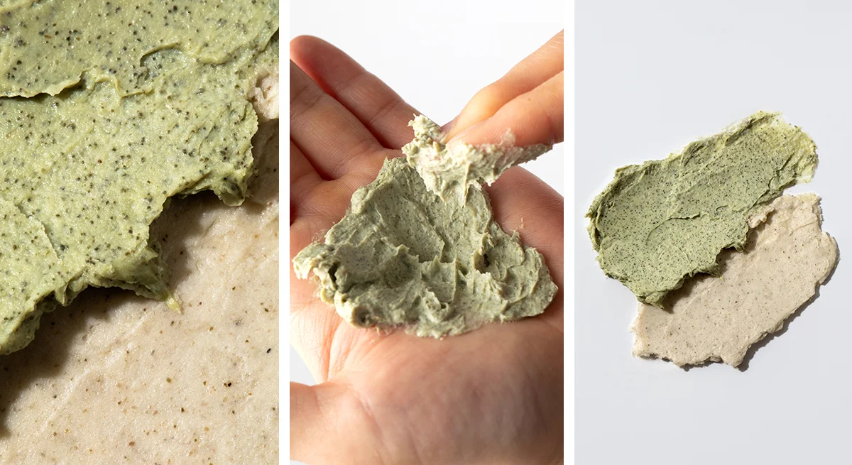 수올림 스크럽 팩 클렌저감잎, 어성초, 율무, 녹차 등 실제 자연 재료를 주성분으로 합니다. 비티와이플러스는 이 특징을 살리기 위해 일반적인 뷰티 촬영의 틀을 깨고 '푸드 스타일링(Food Styling)' 기법을 도입했습니다.